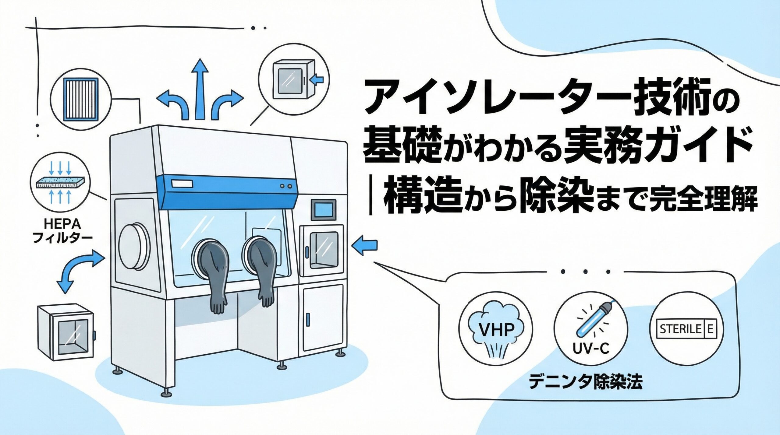 本記事では、アイソレーターの基本構造から、過酸化水素による除染メカニズム、そして日々の運用管理に至るまで、現場で必要となる実務的な知識を体系的に解説します。無菌操作のプロフェッショナルとして、自信を持って業務に取り組めるよう、一つひとつ確認していきましょう。
